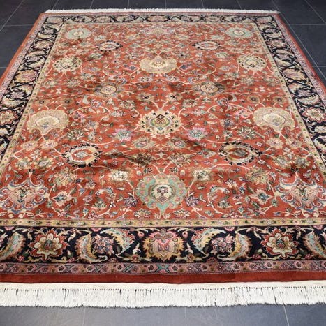 Oprindelse: Indien; Tabriz håndvævet tæppe med uld på bomuld, 200 x 300 cm, i god stand. Klik på den blå "gå til varen" knap, for at købe eller byde på denne vare. Den samlede pris vil blive vist inden du afgiver dit bud.