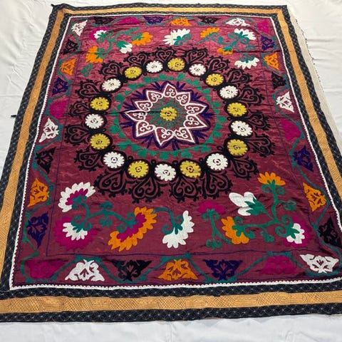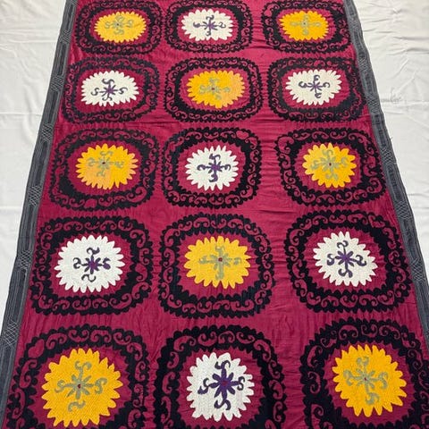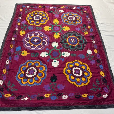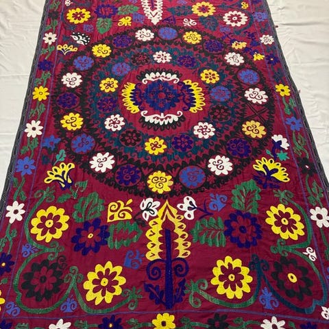 Uzbek Suzani vægtæppe broderi boho borddække, vægophæng, Kelim Suzani. BadCover.
