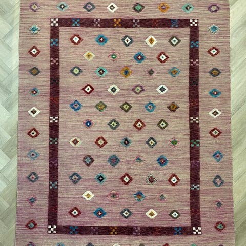 De Kelim er helt ny og ubrugt. Den traditionelle produktionsmetode og det høje niveau af håndværk, der er nødvendigt ved produktionen af disse tæpper. Alle vores Kelims og tæpper er unikke, og vi har kun ét stykke af hver.