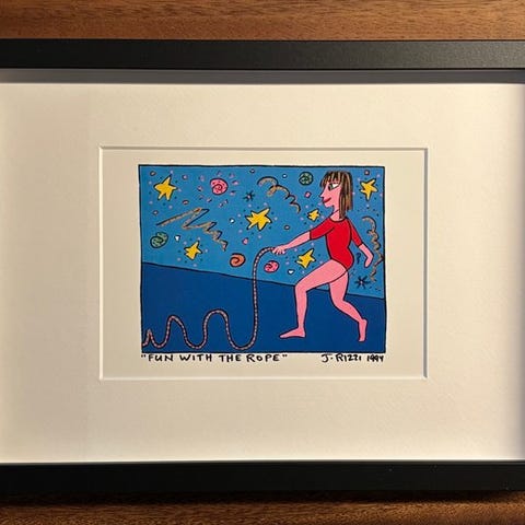 Smukt tryk fra RÊVES DE SPORT-kataloget fra 1996, skabt til de 100. olympiske lege (James Rizzi var den officielle kunstner ved de olympiske lege). Udgave ukendt. Kataloget er udgået.