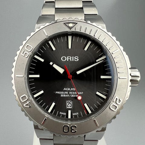 Oris Aquis Date Calibre 400 Automatic, reference 01 400 7769 4154-07 8 22 09PEB, kasse i rustfrit stål med keramisk urglas, gråt urskive, 41 mm, safirglas, stålrem, schweizisk automaticurværk Calibre 400, nytilstand med original æske, papirer og garanti (Periode 2020+). Klik på den blå "gå til varen" knap, for at købe eller byde på denne vare. Den samlede pris vil blive vist inden du afgiver dit bud.