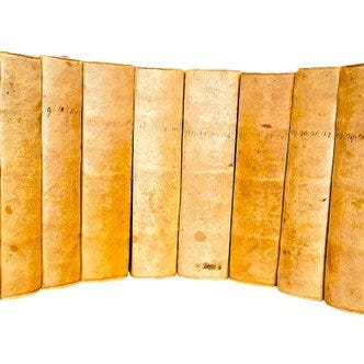 Her et sjældent italiensk værk, med forfatterens dedikation, i originalt lyserødt papiromslag og opbevaret i et specialfremstillet æsketui.