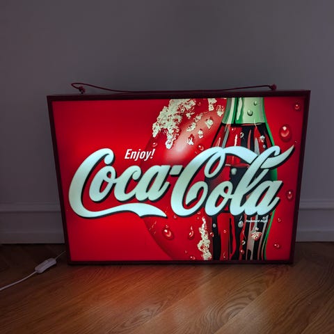 Design inspireret af vintage: Skærmen gengiver den klassiske grafik 'THIRST DELICIOUS AND REFRESHING Coca-Cola' for et autentisk look af en amerikansk diner eller fastfood-restaurant.