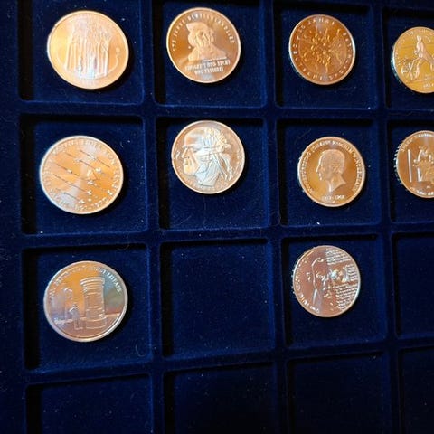 To helt sølvfranske mønter fra 2021 med 25 euro og 10 euro i proof og antique finish, vejer henholdsvis 2 oz og 22,2 g, dia: 41 mm og 37 mm, oplag 1500 og 5000 med cert. nr. 1400 og 1036, ikke cirkuleret, motiv: USA's historie med Washingtons ankomst til Boston. Klik på den blå "gå til varen" knap, for at købe eller byde på denne vare. Den samlede pris vil blive vist inden du afgiver dit bud.