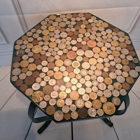 Træbord til stue fra Atelier Lamote, designet af K. Lamote, fremstillet i Belgien i 2022 af gamle vinkasser, ben fra en gammel seng, fuldt lakeret for at beskytte mod vandmærker; målene 50 cm bred, 50 cm dyb, 34 cm høj, vægt 6 kg. Klik på den blå "gå til varen" knap, for at købe eller byde på denne vare. Den samlede pris vil blive vist inden du afgiver dit bud.