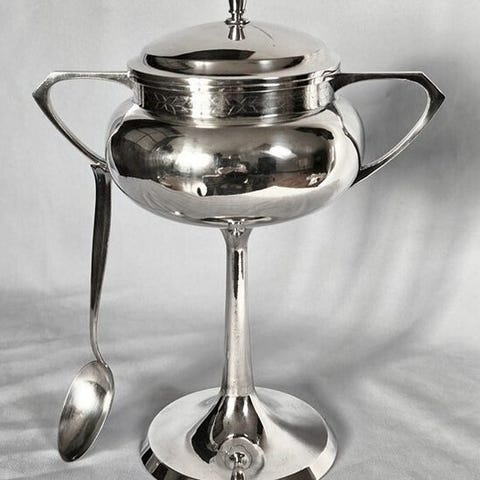 Elegant og raffineret service til sennep - Sauce—Regencia-stil - i sølvmetal (punchet og med relief i bunden) fra midten af det 20. århundrede — i fremragende stand!!