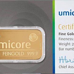 Denne 20 g guldbar er garanteret .9999 fin og leveres i et certifikatkort, der bekræfter gulds renhed og vægt. En effektiv måde at erhverve guld på, denne guldbar fra Argor Heraeus er et ideelt valg for investorer, der ønsker at øge deres guldbeholdning.