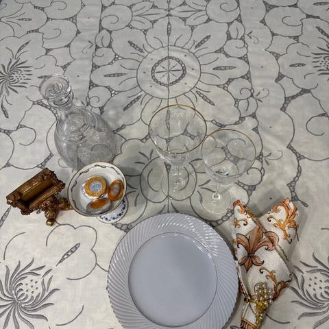 Et strejf af kongelighed og elegance ved bordet med sammensætninger af porcelæn, service i zecchinoguld og sølv, krystal.