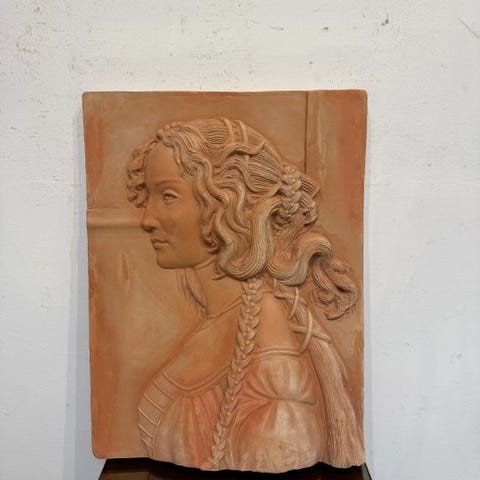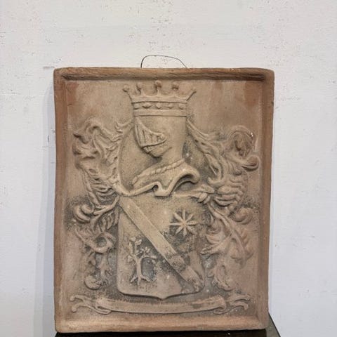 Terracotta vægplade i relief, der forestiller en nobil herre i profil, fremstillet i Italien i første halvdel af det 20. århundrede, i god stand, dimensioner 55 × 55 × 9 cm. Klik på den blå "gå til varen" knap, for at købe eller byde på denne vare. Den samlede pris vil blive vist inden du afgiver dit bud.