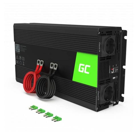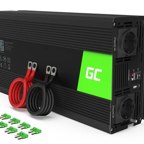 Green Cell 2000 watts inverter med ren sinus kurve som man kender det fra en alm. stikkontakt. Kan bruge til både værktøj, maskiner og elektronisk udstyr. Nem at bruge: Tilslut 12 volt batteri og du får 230 volt strøm ud på den anden side. Med ren sinus kurve Effektivitetsgrad: 85-90% Kontinuerlig belastning: 2000 watt Max belastning: 4000 watt Input: 12 volt (DC) Output 230 volt (AC) Output: 6,5 A / USB 2,1 A Mål: 345 x 230 x 108 mm Kun til indendørs brug Nr. 8009371