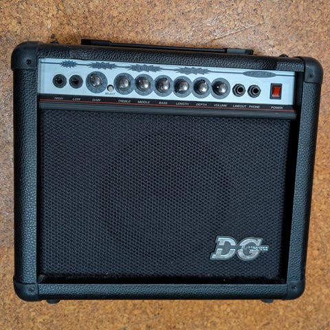 Lille fiks forstærker der ikke fylder meget og er let at tage med sig rundt på farten.