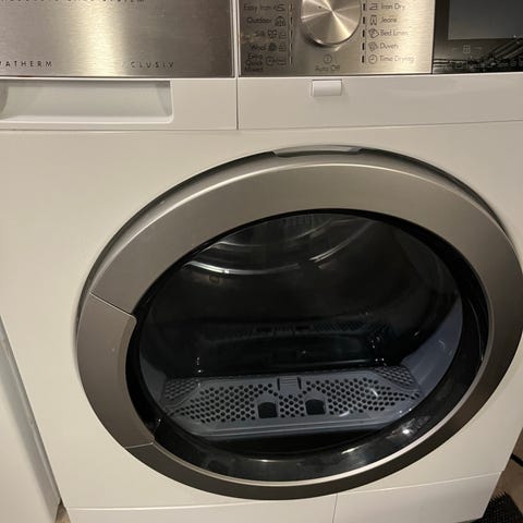 Jeg har renset alt fnuller ud alle steder. Nedest til højre, sidder en blæser foran kobberrørene med kølevæsken. Den blæser kører ikke, men burde gøre det under hele tumblingen. Jeg kan skildt bevæge den med fingeren, så lejerne har det fint. Muligvis er det bare den der skal skiftes. Jeg kan se, at den koster ~400kr fra AEG, man kan muligvis få en billigere fra et andet sted.