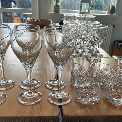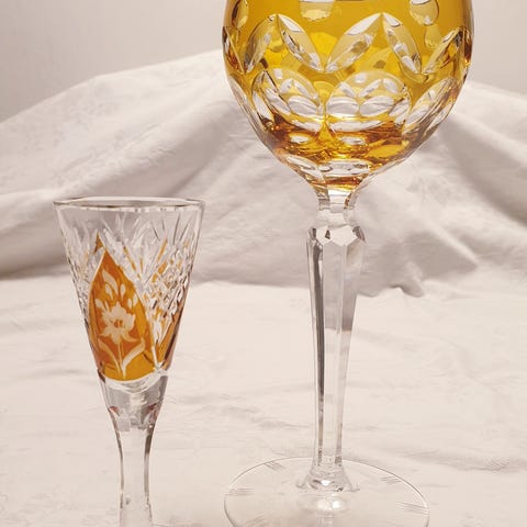 Bøhmiske krystal glas med slebne røde cuppa - detaljer i annoncen