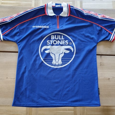 Umbro EfB fodboldtrøje til herrer i størrelse S. Trøjen står snorlige og er aldrig brugt. Den er langærmet og virkelig en fed retro trøje.