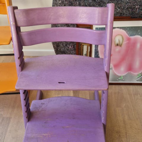 Tripp Trapp stole som har tjent familien godt igennem årene. Solide produkter men fremstår men synlige brugsspor. 250 kr. per stk.