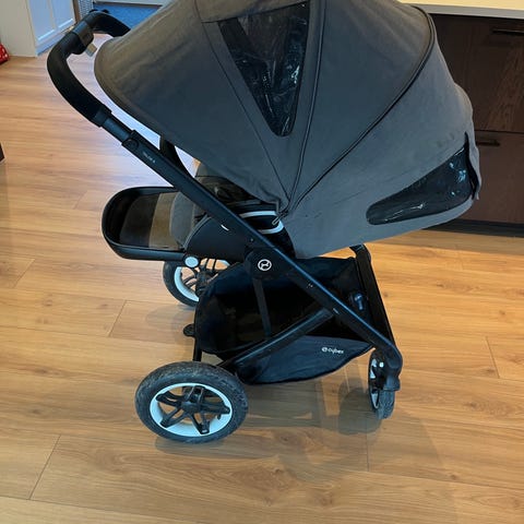 CYBEX klapvogn i sort farve. Designet med justerbart håndtag og stor opbevaringskurv under sædet. Velegnet til børn og praktisk til daglig brug.