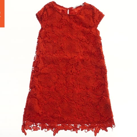Kjolen er lavet af blonder og har lange ærmer med blonder, der giver et elegant og fint udseende. Kjolen har en guld lynlås på bagsiden og en flæser nederst. Den er mørkeblå i farven og designet til at kunne bruges til specielle lejligheder.