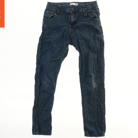 Et par blå jeans til børn. Bukserne har lukkemekanisme foran, samt typiske lommer både foran og bagpå. Stoffet har et klassisk denim-look.
