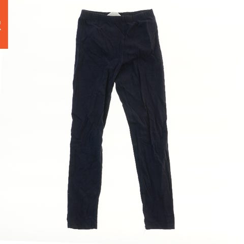 Et par mørkeblå leggings med elastik i taljen og en tætsiddende pasform. Bukserne har elastiske manchetter ved anklerne.