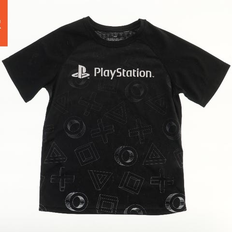 Et par sorte shorts med elastisk talje og løbegang. På forsiden er der et hvidt PlayStation logo trykt nederst til højre.