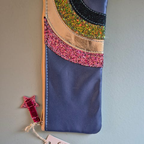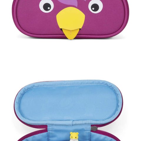 Dette er et blåt bamse penalhus fra Bonbon-Land, formet som en and med et gult næb. Penalhuset har en lynlås åbning og måler cirka 30 cm i størrelse, hvilket gør det ideelt til opbevaring af skriveredskaber som blyanter og kuglepenne. Penalhuset har et blødt plysmateriale og en nøgleholder med Bonbon-Land mærkelogoet.