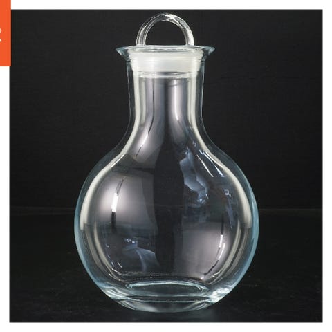 Dette er en elegant karaffel lavet af klart glas, som måler 26 cm i højden. Den har et dekorativt låg og en unik formgivning, hvilket gør den ideel til servering af spiritus eller andre drikkevarer. Den klare glasoverflade har diskrete mønstre, der giver et sofistikeret look.