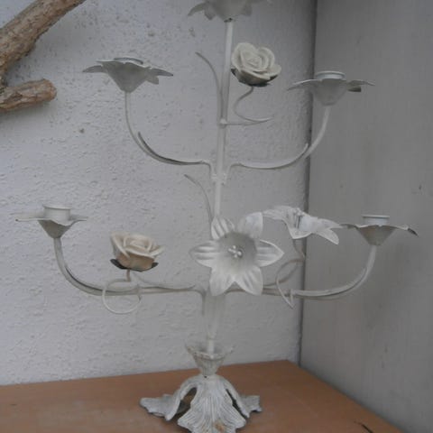 Fransk lysestage med roser i sart rosa porcelæn…virkelig fin og petite…måler 30x24 …koster 500,-kr.