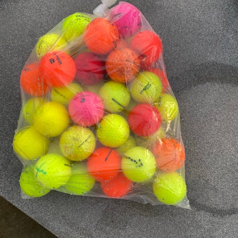 12 stk golfbolde i orange/pink. Perfekt til vintergolf 🙂