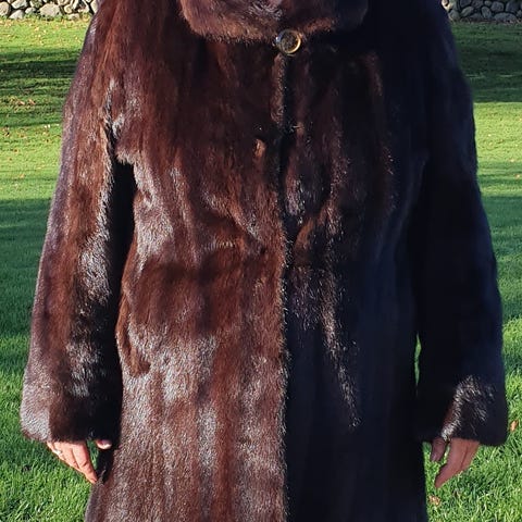 Fantastisk smuk minkkåbe fra MAPFUR (Mogens Alex Petersen) er købet engros, derfor den ”billige pris” med knaplukning og lommer. Frakken har en klassisk silhuet og en behagelig pasform.
