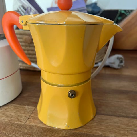 Espressokander GD, 2 kopper i rustfri stål, købt i Italien. Den er brugt, men er velholdt og fungerer perfekt. H. 14 cm., Ekstra tætningsring medfølger.