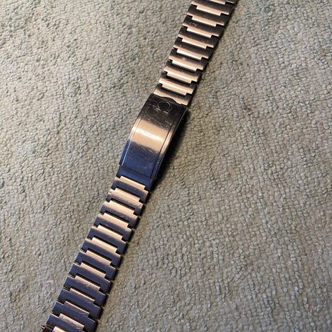 Virkelig sjælden lænke til Omega Seamaster og Geneve modeller, normalt er de slidt op, og erstattet af læderrem, materialet er rustfritstål og lænken har Omega logoet, perfekt til vintage Omega ure.