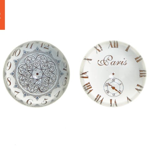 Denne vare består af to glaserede papirvægte, der måler 8 cm i størrelse hver. De er geometrisk formede og har en skinnende overflade. Designet er enkelt og elegant, hvilket gør dem perfekte som en stilfuld måde at holde papir på plads på et skrivebord eller i en kontorindstilling.