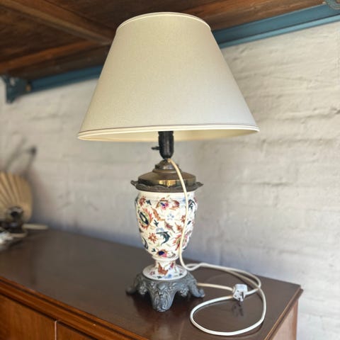 Gammel porcelæn bordlampe lys støvet grøn, ingen skader, i rigtig fin stand