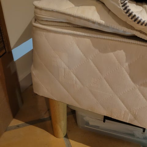 Denne boxmadras er fantastisk god at ligge på. Den er blevet repareret en enkelt gang i bunden, men er ellers i fin stand.