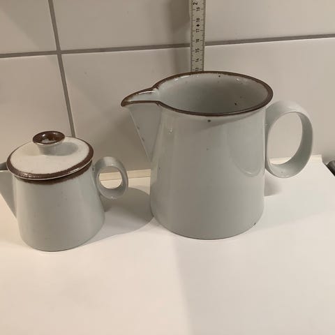 Thekande og mælkekande i stentøj “Maren” fra Eslau keramik i Sengeløse, design Tue Eslau. Produceret I 80’ rene. Uden skår eller revner.
