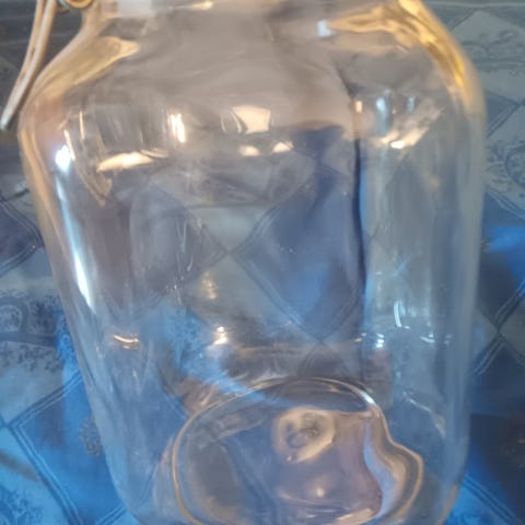 En stor, gennemsigtig glasbeholder med tilhørende låg. Beholderen har en cylindrisk form med dimensioner på 24 cm i diameter og 20 cm i højde. Den er designet til opbevaring af forskellige genstande eller fødevarer, og det klare glas giver mulighed for nemt at se indholdet. Låget passer godt på beholderen og har en topknop for nem af- og påsætning.