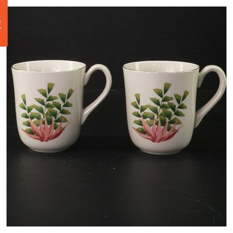 Hvid krus med blåt blomstermønster (str. 13x11,5 cm)