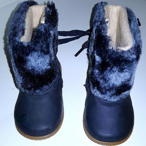 Dette er et par blå baby/børnestøvler fra mærket Barts. Støvlerne er designet til at holde små fødder varme og beskyttede mod kolde og fugtige forhold. De har en skridsikker sål og elastisk lukning for nem på- og afklædning, hvilket gør dem ideelle til småbørn, der bevæger sig omkring. Videre er de polstrede for ekstra komfort og varme. Støvlerne er størrelse 14 cm.