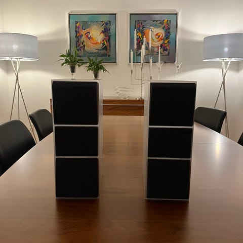 Højtalere er blevet renoveret med nye skumophæng og de er rigtig flotte trods at de har en del år på bagen . Det var et projekt til knægtens værelse men han fandt en anden løsning