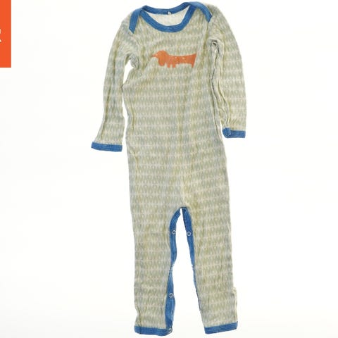 Dette er en heldragt til børn, primært i hvid farve. Dragten har lange ærmer og er dekoreret med et panda-ansigt på forsiden, bestående af sorte øjne og næse. Der er tre knapper på skulderen for let påklædning.