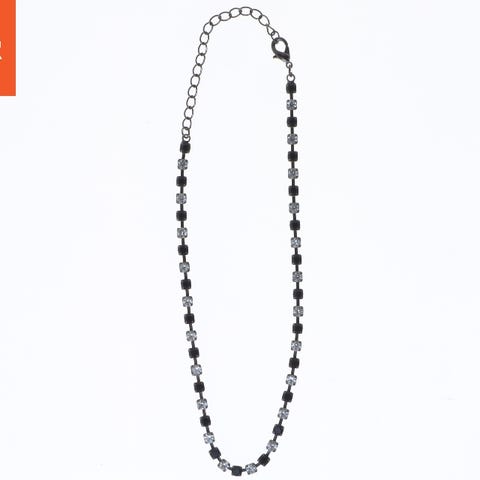 En smuk halskæde med flere rektangulære farvede sten. Kæden er lavet af metal, hvilket giver den et elegant look. Stenene kommer i forskellige nuancer af blå og grøn, hvilket giver et unikt præg til smykket. Kæden er 48 cm lang, hvilket gør den ideel til både hverdagsbrug og specielle anledninger.