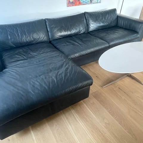 Møbler til stuen fra hjem med hund/kat derfor dyrehår på filten på bagsiden af hynderne. (Hunde har ikke været i sofaerne).