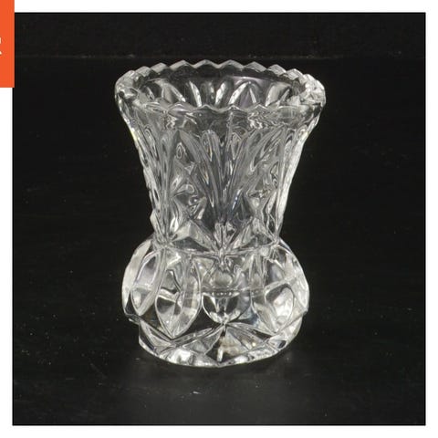 Denne krystalvase har en diameter på 13 cm og en højde på 15 cm. Den er detaljeret med et elegant mønster, der strækker sig langs dens overflade. Den har en bred åbning og en robust fod, der sikrer stabilitet.