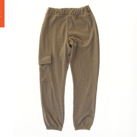 Pæn pair af mørkeblå joggingbukser med ribbet linning. De har snørre foran og lynlås sidelommer. Bagpå er der en enkelt lomme samt et mærke med skrift.