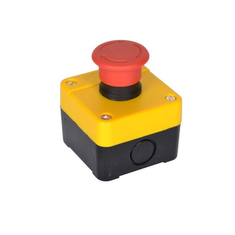Tænd/sluk kontakt til 230 volt WTD transportbånd. Passer til både 3,2 og 5 meter modellerne. Beregnet til sammenkobling med nødstopknap nr. 54 - så der er nødstop på begge sider af båndet. Se herunder. 220-240 volt Schuko-stik max 16 ampere 50 + 100 cm kabel IP54 Støv- og spuletæt Nr. DZ08-1