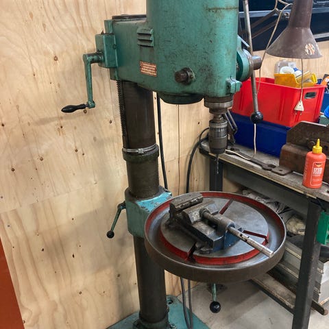 Søjleboremaskine med trinløs indstilling af hastighed, 16 mm borepatron, laser og 500 watt motor. Desuden kipbar bord (+/- 45°) som kan drejes 360° omkring søjlen, så man også kan bruge selve foden som bord. Mulighed for montering af konusbor - se herunder. Motor: 500 watt / 230 volt Konus2 opsætning Variabel hastighed: 290-2500 o/min Digital display på fronten Positionslaser Inkl. borepatron: 16 mm Spindelvandring: 90 mm Udladning: 155 mm Søljetykkelse: 60 mm Kravediameter: 48 mm Bord: 245 x 245 mm Fod: 410 x 245 mm Totalhøjde: 900 mm Egenvægt: 40 kg Nr. 55220
