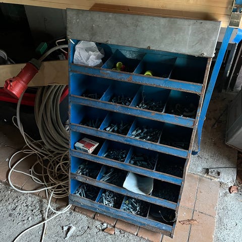 Boltreol med 4 udtagelig skuffer med låg. I hver skuffer er der 13 æsker i forskellige størrelser (se billeder). Utrolig praktisk reol med plads til mange forskellige dele. Bemærk at de enkelte skuffer er udstyret med låg og at æskerne kan flyttes rundt mellem skufferne i boltreolen. Har man flere reoler, kan de desuden stables oven på hinanden og stadigvæk stå sikkert. Mål: 370 x 265 x 305 mm. Egenvægt: 5 kg Nr. RU-BO