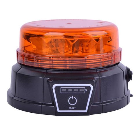 Meget kraftigt LED rotorblink med 36 stk. 1,5 watts LED. Kan bruges til både 12 og 24 volt. Desuden mulighed for at vælge mellem 3 forskellige blinkmønstre, fx rotorende eller flash. Leveres uden sokkel. Størrelse: Ø125 x 193 mm 54 watt 3 blinkmønstre Kraftig plast + gummi IP56 Tilkøb evt. sokkel herunder, hvor man kan vælge imellem 2 forskellige udgaver til henholdsvis vandrette og lodrette overflader.