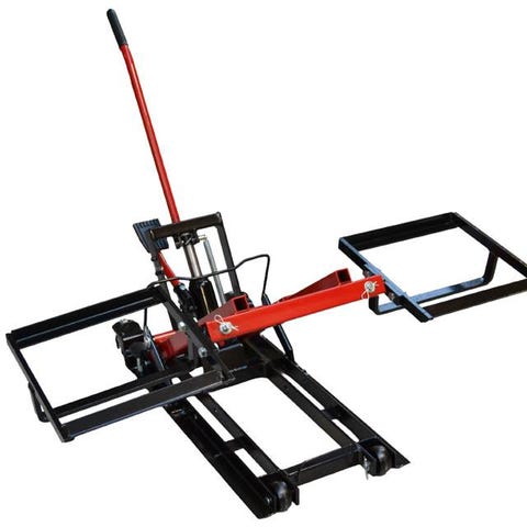 Praktisk lift til havetraktorer, ATV'er og mindre maskiner op til 800 kg. Liften er meget nem at bruge og er principielt blot en forvokset donkraft: Kør havetraktoren hen på liften, spænd hjulene fast og tip liften vha. håndtaget. Liften sikres nemt med en split, så man kan arbejde uhindret på undersiden af maskinen, mens den står på skrå. Liften er meget mobil, kan nemt flyttes rundt og anbefales til de lidt større ATV'er og havetraktorer op til 800 kg. Løfteevne: 800 kg Bredde: 115 - 135 cm Vægt: 60 kg Mål: 100 x 40 x 30 cm Nr. 8007746