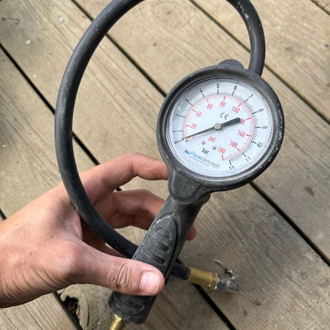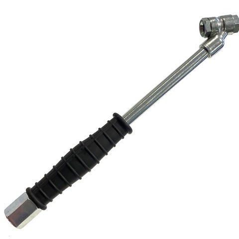 Professionel og meget præcis pumpepistol fra den danske producent JWL Air Control. Er forsynet med gummibeskyttet manometer på 63 mm og desuden både aftrækker og udluftningsventil. Måleskala med både bar og psi. Se også JWL's video på fanen "video". Måler: 0-12 bar (0-174 psi) Nøjagtighed: ±0,19 bar Vægt: 340 gram Inkl. 1/4" nippel Nr. 9056085